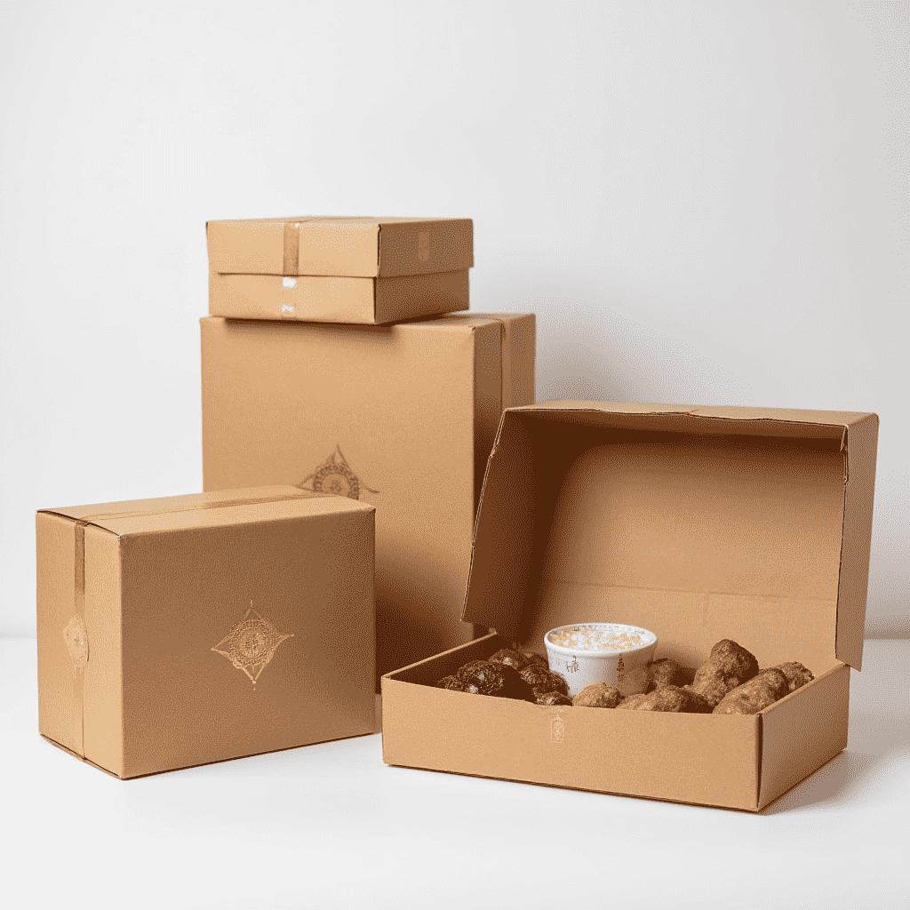 Food-safe kraft boxes and corrugated boxes are ideal for durability and sustainability.